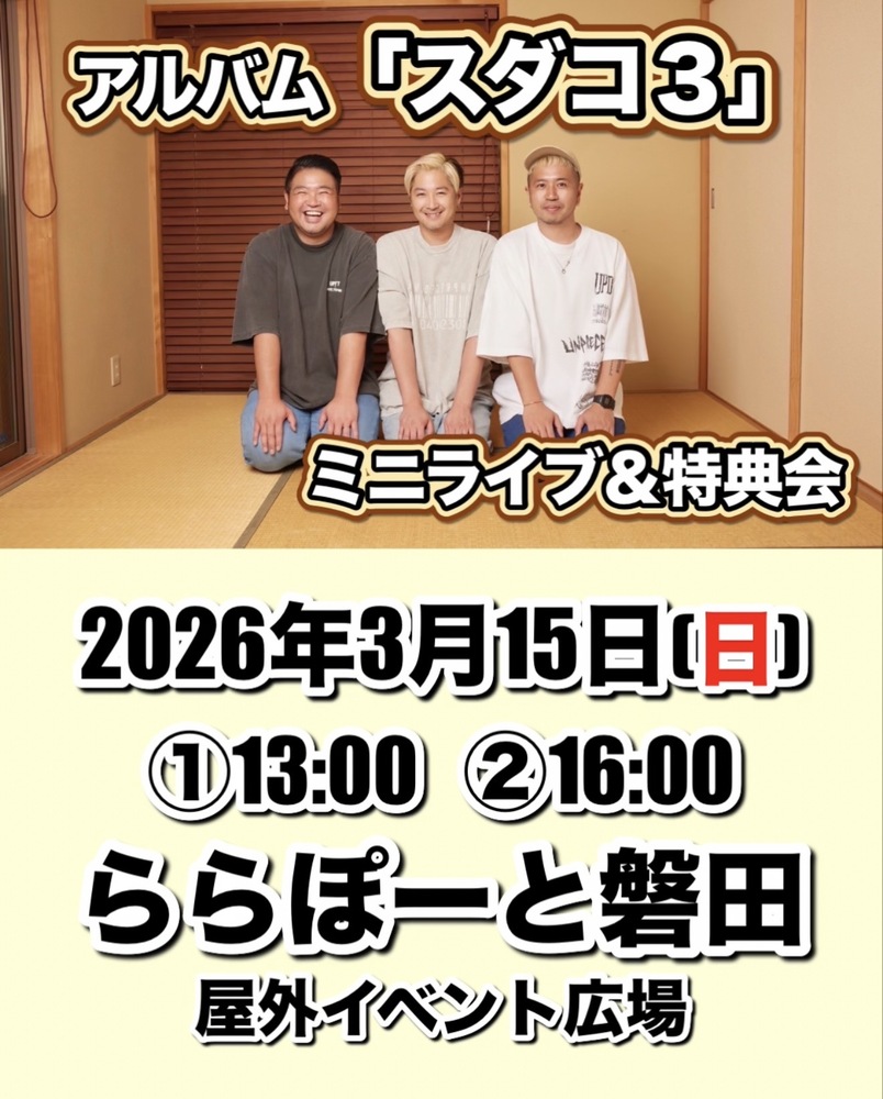 3月15日(日) 13:00/16:00 ららぽーと磐田