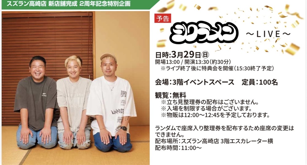 ※ライブ観覧の参加人数に制限を設けさせていただきます。